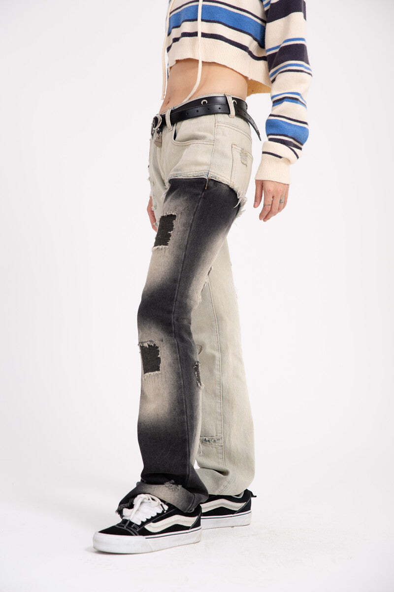 Que vous recherchiez un jean ajusté, un modèle délavé ou une coupe décontractée, notre collection propose une variété de styles pour compléter votre garde-robe streetwear. Exprimez votre individualité avec ‘Halved’ Jeans, une création unique de Mauv Studio Y2K Store