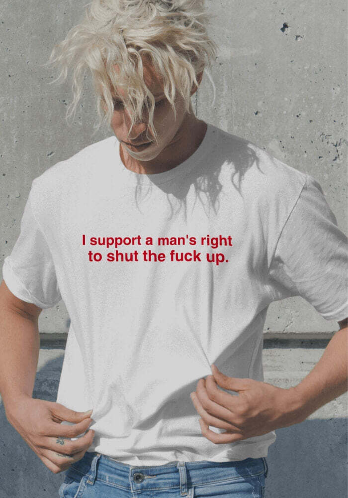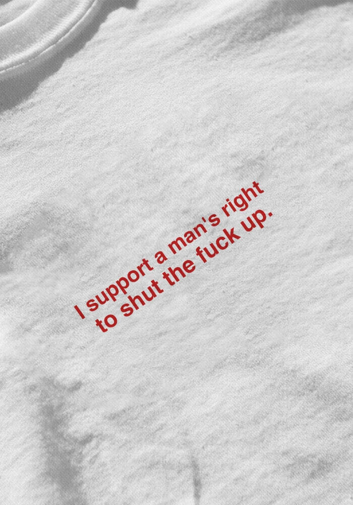 - Print detail at front: I support a man’s right to shut the f*ck up.