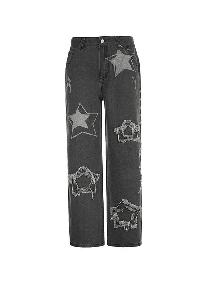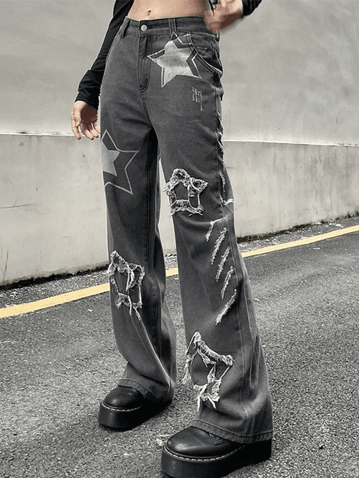 Style Core Aesthetics, New Style Trends – Jean boyfriend déchiré Vintage Star Patch