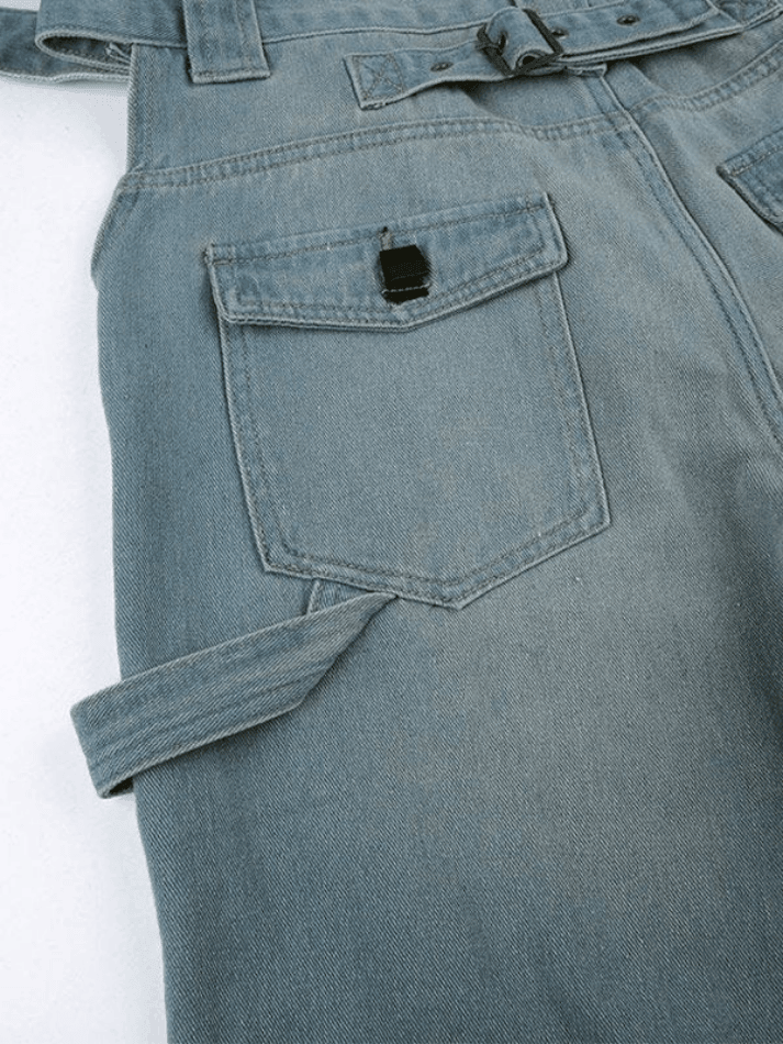 Description : Les jeans cargo sont toujours à la mode de l’été aux saisons froides. Ce jean élégant et chic confectionné en tissu de coton mélangé, présente une ceinture à boucle à la taille avec des découpes, une couture à empiècements sur la jambe, il a également un bouton orné aux chevilles et une fine sangle aux fesses, terminée par une fermeture à glissière.