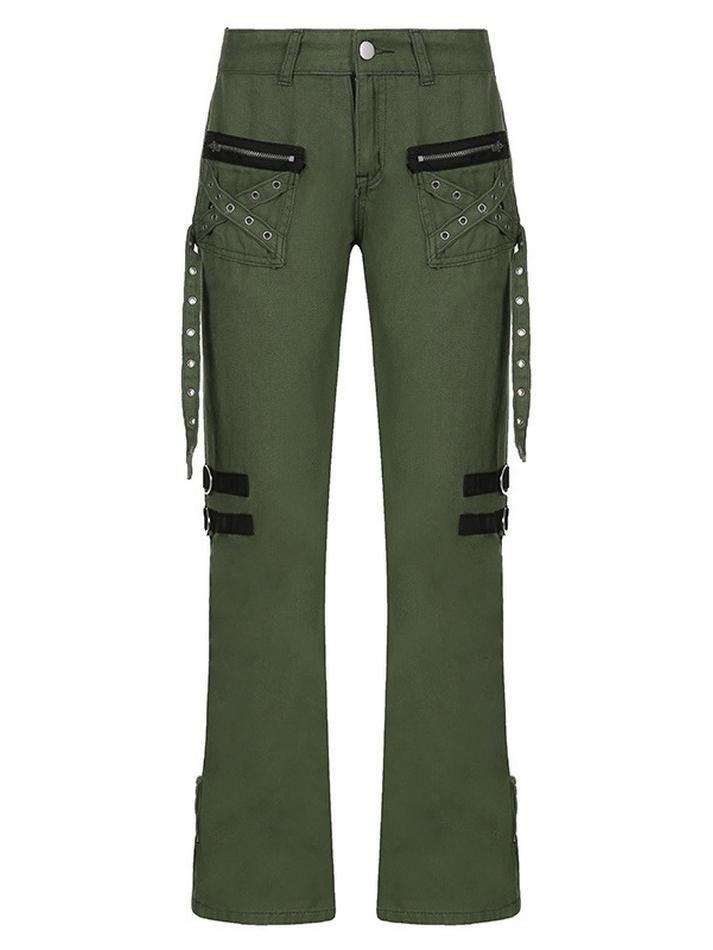 Style Core Aesthetics, New Style Trends – Jean cargo à fermeture éclair et décor métallique