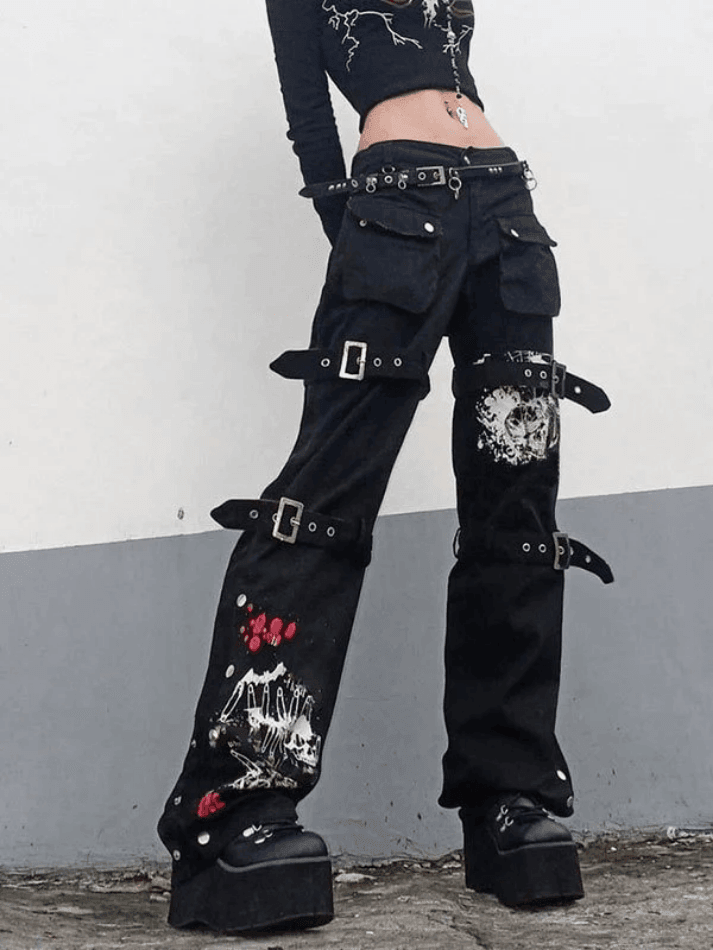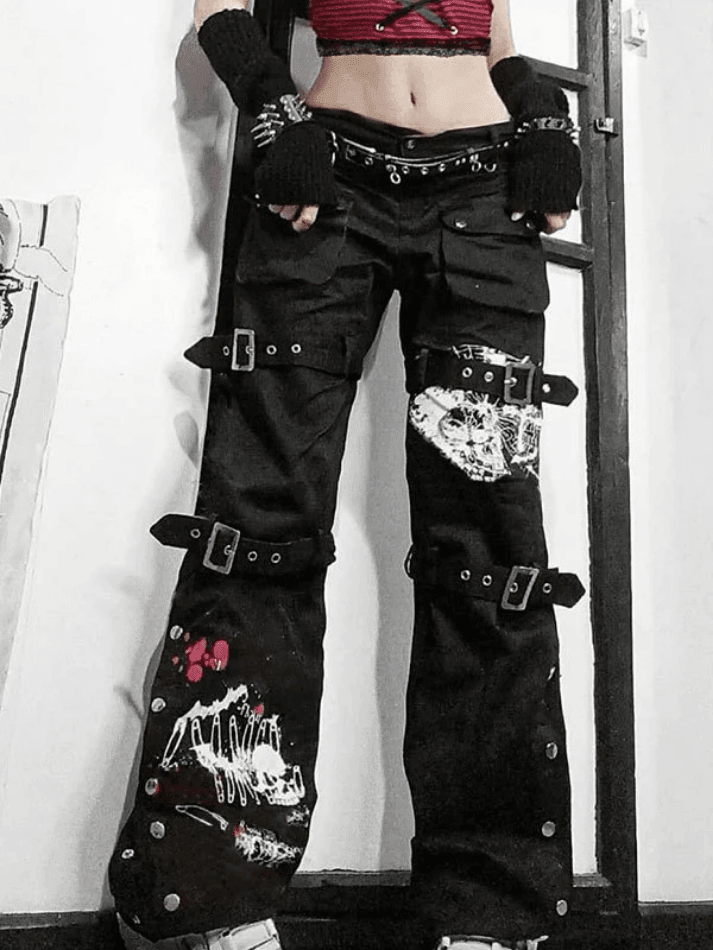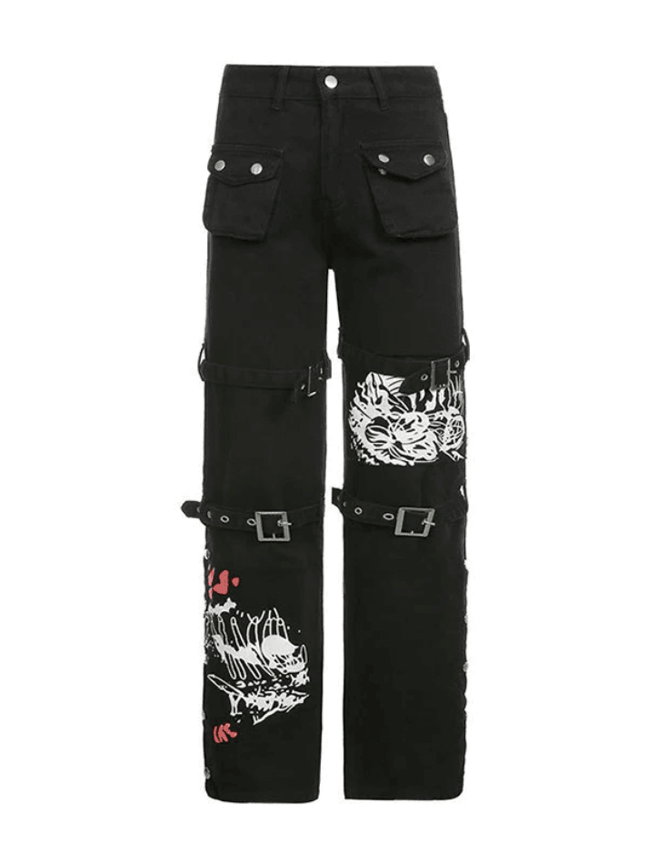 ‘Le Jean cargo imprimé à bride à boucle de chez Mauv Studio Y2K Store