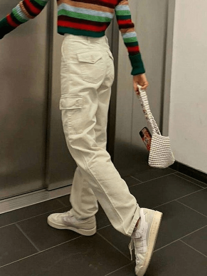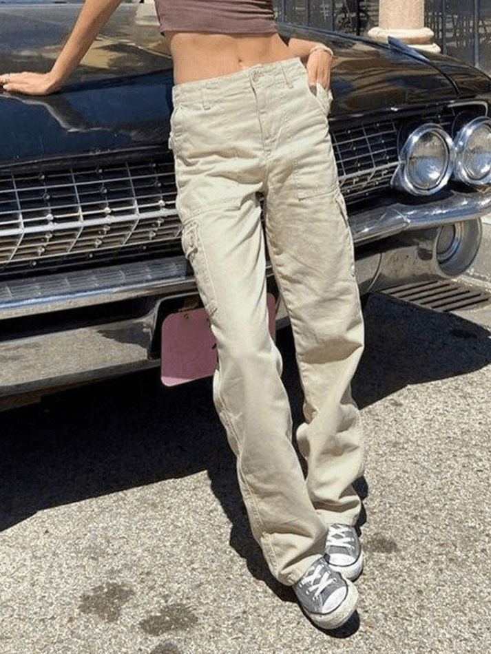 Conception : fermeture à glissière et bouton, poches cargo détail patché, taille haute, passants de ceinture multiples ‘Le Jean cargo à jambe droite et poche de chez Mauv Studio Y2K Store