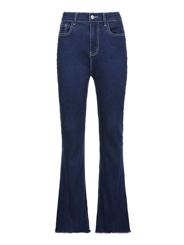 Design : poches fonctionnelles, fermeture zippée et boutonnée, taille haute, coupe slim évasée, ourlet brut. ‘Le Jean évasé taille haute classique de chez Mauv Studio Y2K Store
