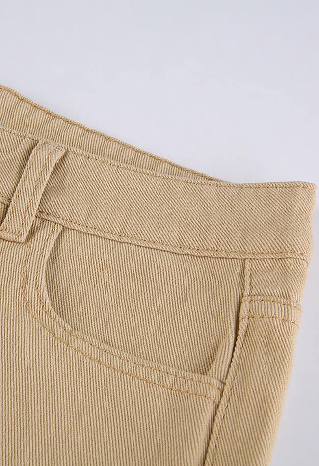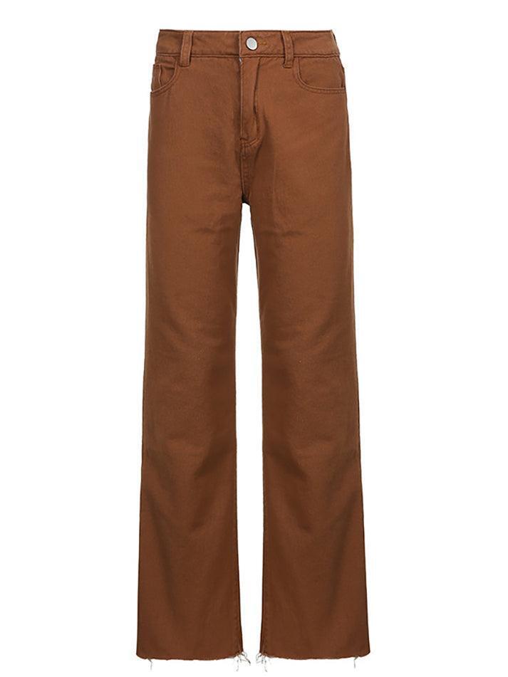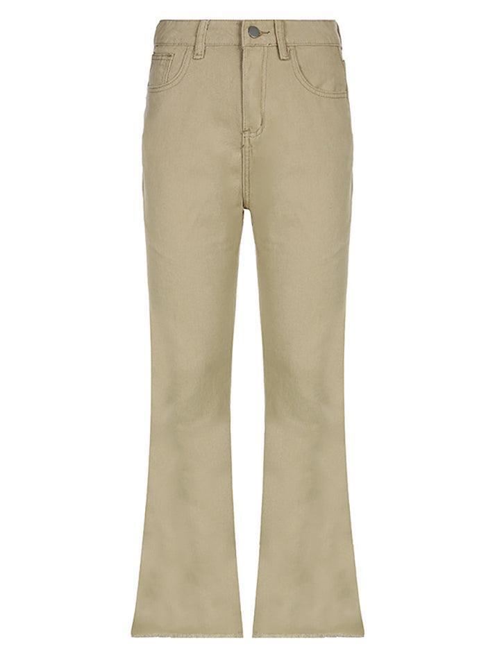 Design : poches fonctionnelles, fermeture éclair et boutonnée, taille haute, passants de ceinture multiples. ‘Le Jean évasé uni taille haute de chez Mauv Studio Y2K Store