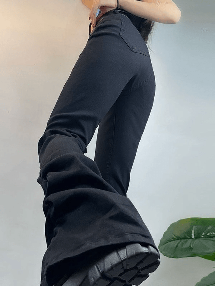 Design : poches fonctionnelles, taille haute, fermeture éclair et boutonnée, coupe slim évasée, chevilles froncées. ‘Le Jean vintage évasé à la cheville de chez Mauv Studio Y2K Store