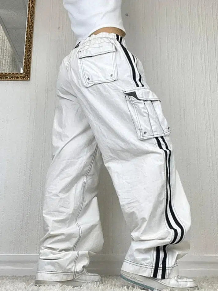 ‘Le Jean cargo baggy blanc à rayures latérales de chez Mauv Studio Y2K Store