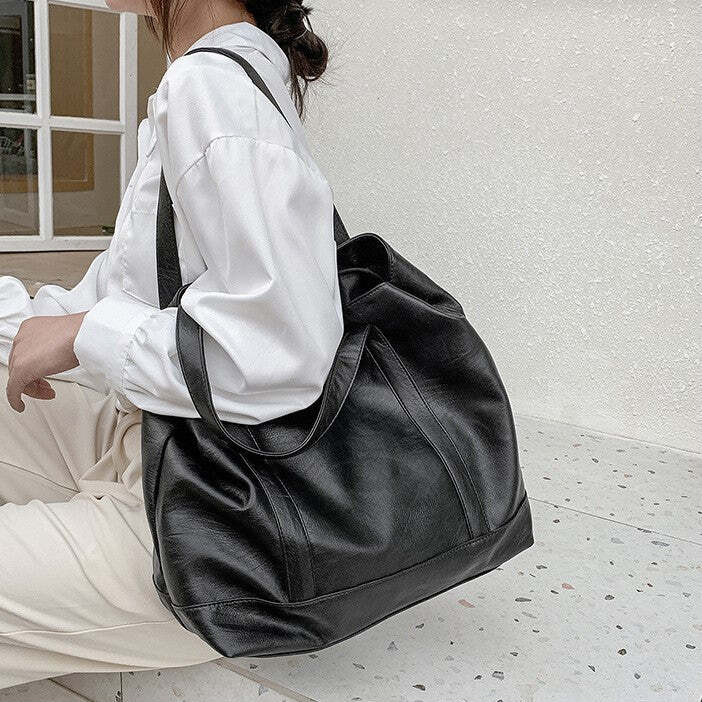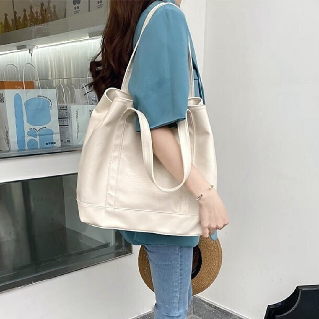 Joliva affiche une ligne verticale qui allonge la silhouette. Le cabas parfait pour emporter plus, avec une anse en cuir végan qui tient bien à l’épaule et un zip qui sécurise l’intérieur.
