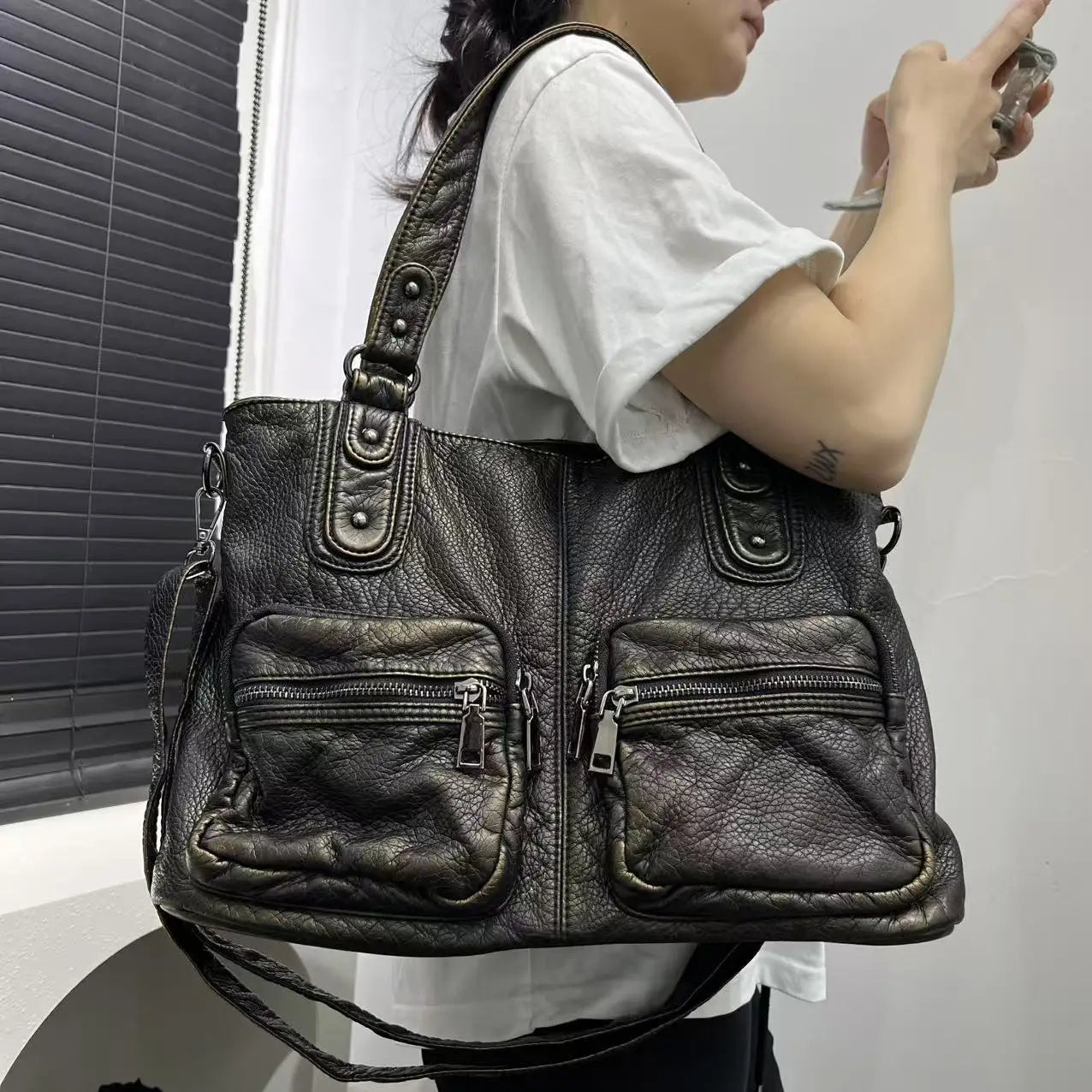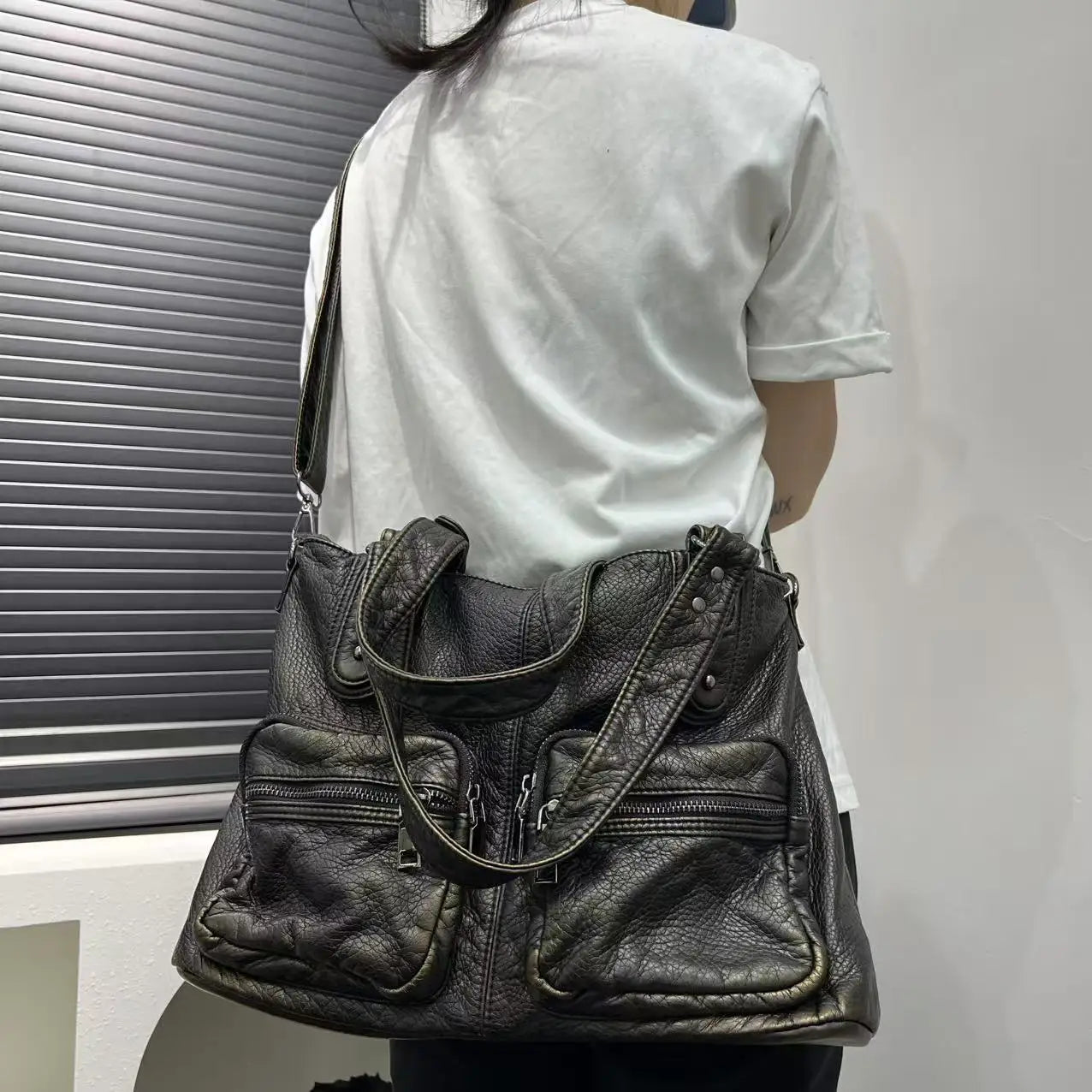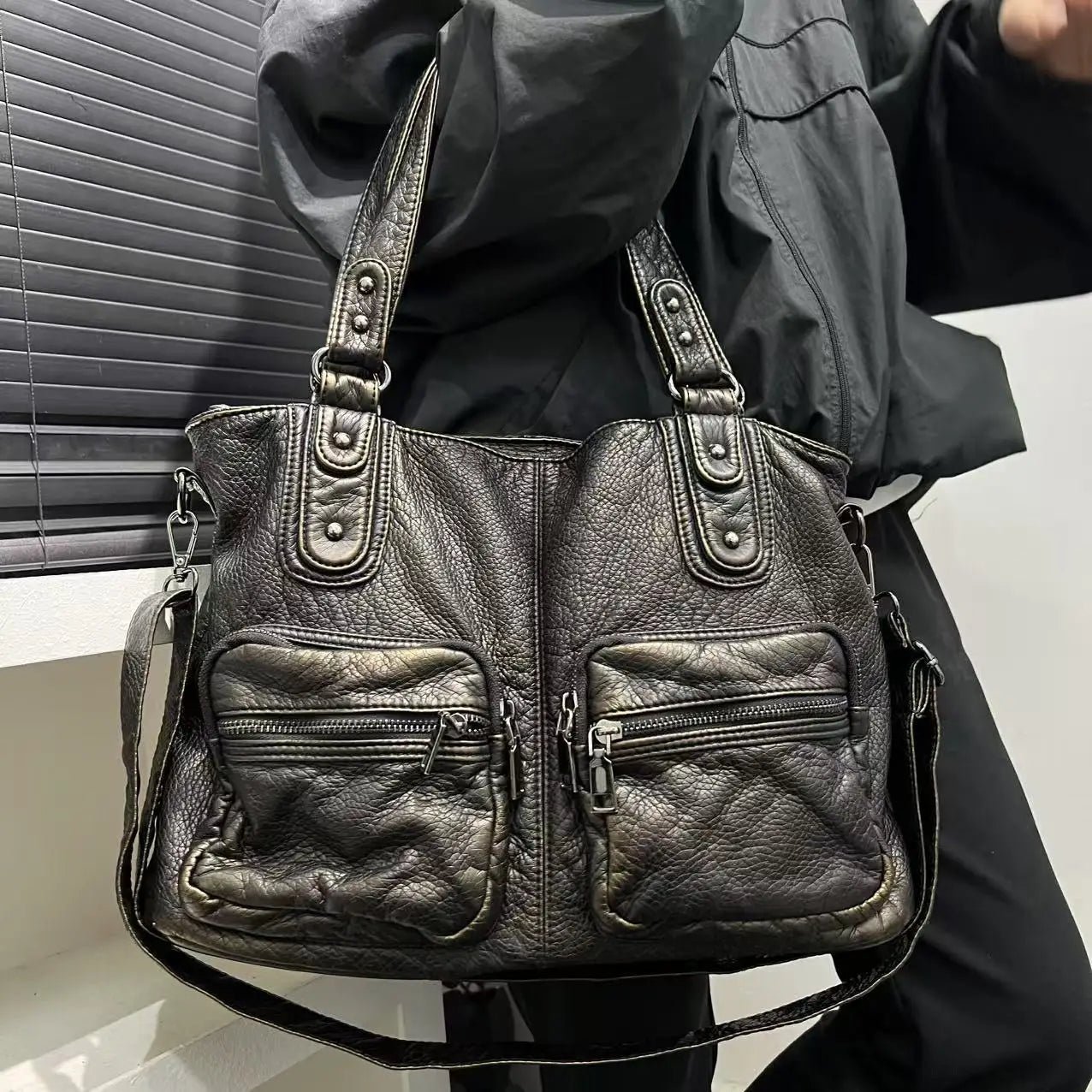 Plonge dans l’esthétique Y2K avec ce sac moto vintage au look street et rétro. Conçu en simili cuir vieilli, il offre un style audacieux et pratique pour toutes tes sorties. Ses multiples poches zippées à l’avant et sa grande capacité en font un compagnon idéal pour un quotidien stylé.