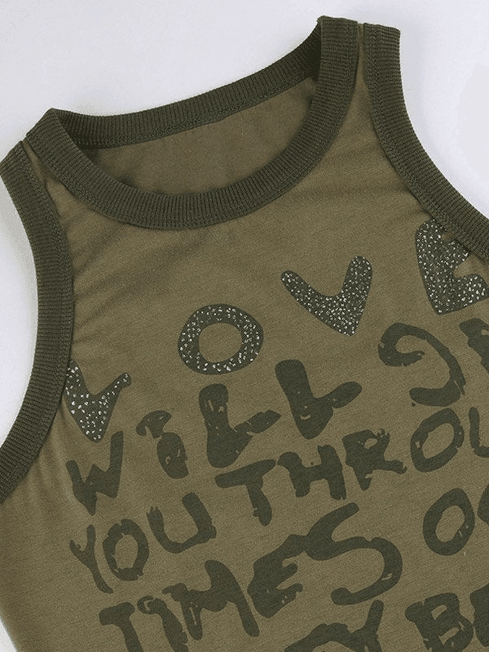 Get nostalgic with these retro-inspired tank tops that bring back the 90s y2k vibes. The eye-catching letter pattern and contrast ribbed trim detailing add a touch of vintage charm to your outfit. Designed with a slim fit, these tanks flatter your silhouette while keeping you comfortable. Perfect for casual, street, or punk-inspired looks. Available in various colors to suit your unique style. Stay trendy and embrace the throwback fashion with these must-have tank tops.
