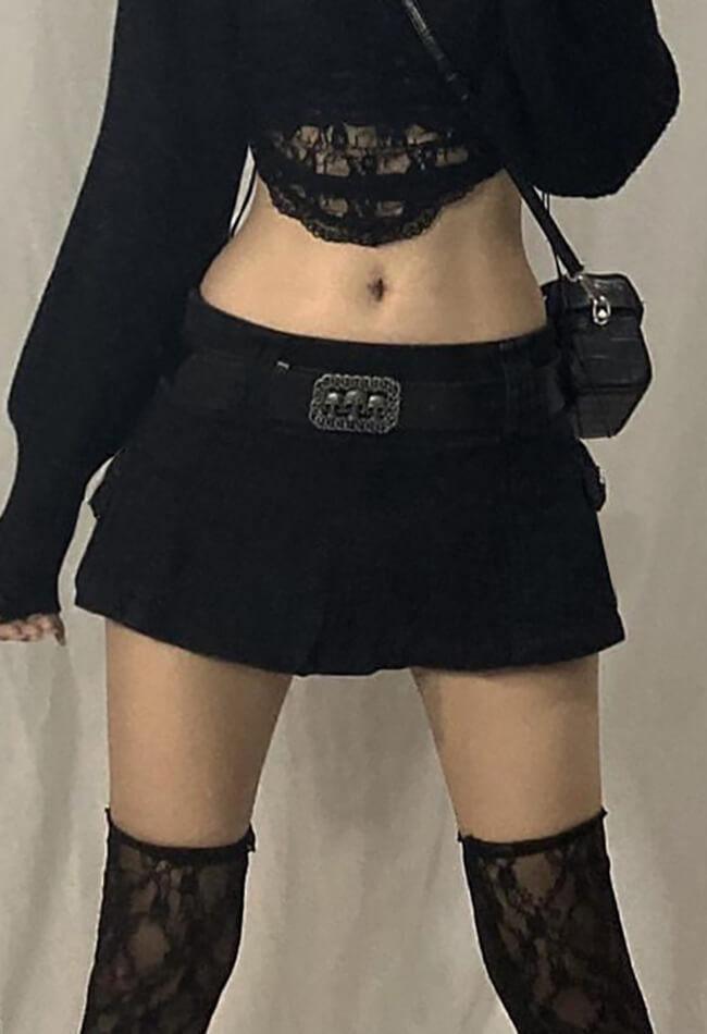 Conception : ceinture large, poches fonctionnelles, passants de ceinture, fermeture zippée au dos ‘Le Mini jupe patineuse en jean de chez Mauv Studio Y2K Store