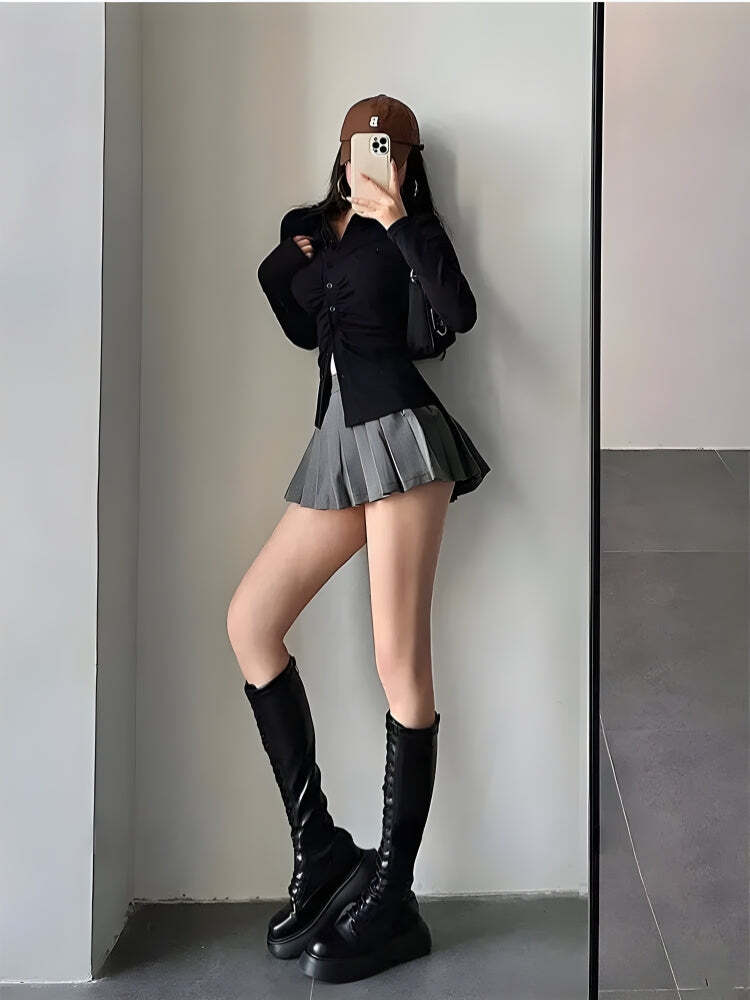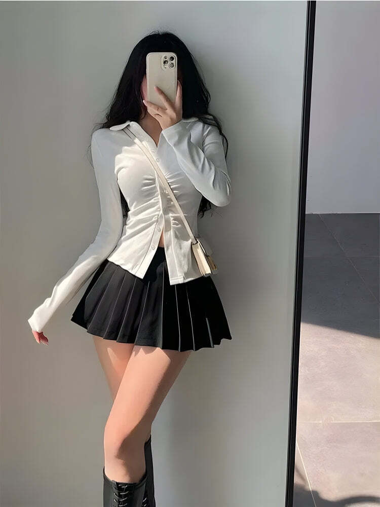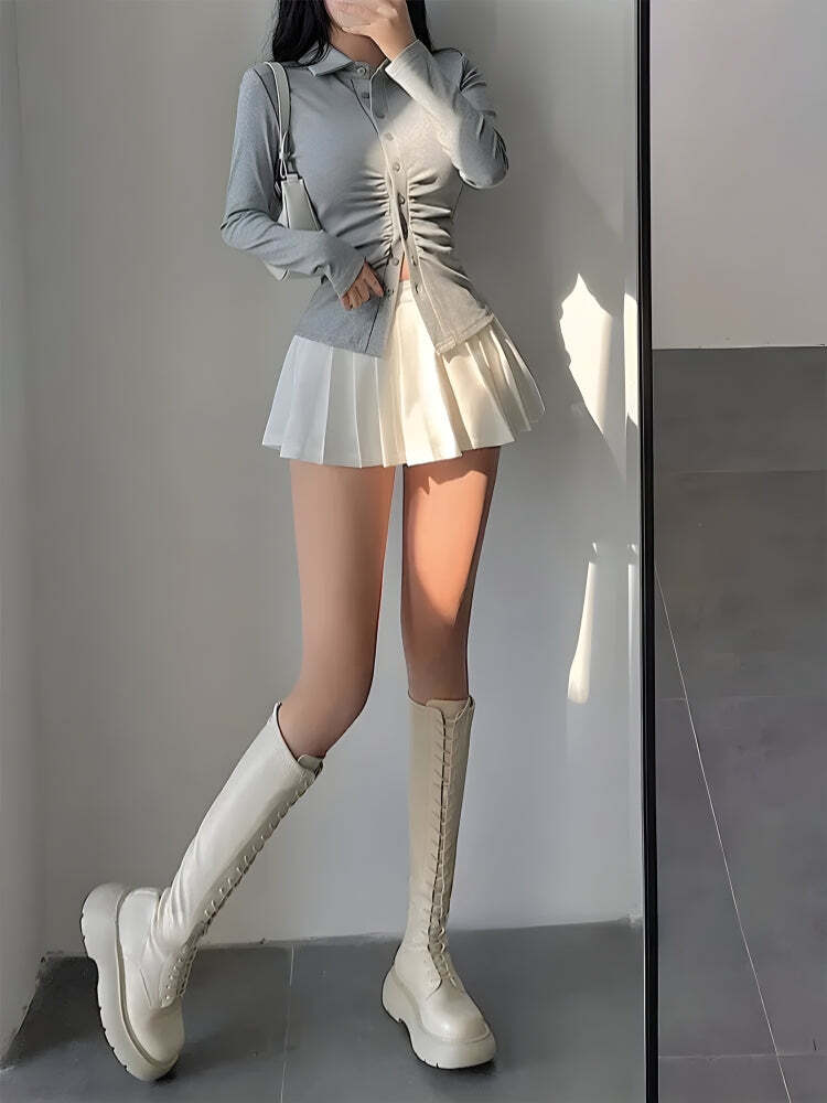 Hit the courts or the campus in style with this high-waisted tennis mini skirt. Featuring built-in under shorts for practicality, its pleated design adds a classic touch. Perfect for the skater or college girl look, it’s a versatile piece for an active and stylish lifestyle.
