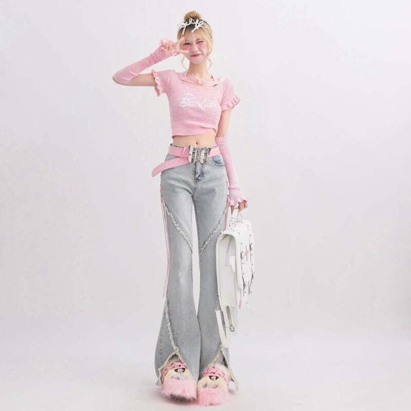 Be the first to review “Style Core Aesthetics, New Style Trends – Soft Girl Lace Up Slit Flare Jeans” Cancel reply