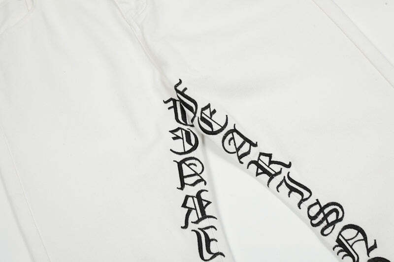 Que vous recherchiez un jean ajusté, un modèle délavé ou une coupe décontractée, notre collection propose une variété de styles pour compléter votre garde-robe streetwear. Exprimez votre individualité avec ‘Spell’ Jeans, une création unique de Mauv Studio Y2K Store