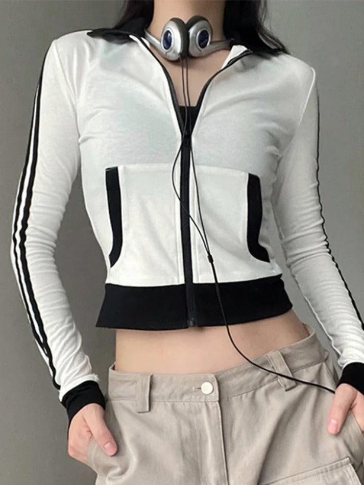 Be the first to review “Style Core Aesthetics, New Style Trends – Sporty Contrast Color Collar Neck Thin Jacket” Cancel reply
