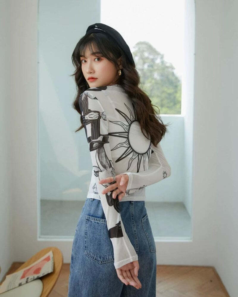 This eye-catching top features an intricate sun and moon print, perfect for those who want to add a touch of magic to their wardrobe. Crafted from lightweight, breathable fabric, it offers a comfortable fit while making a bold statement. Whether you pair it with high-waisted jeans or layer it over a bralette, this top is sure to elevate your style.