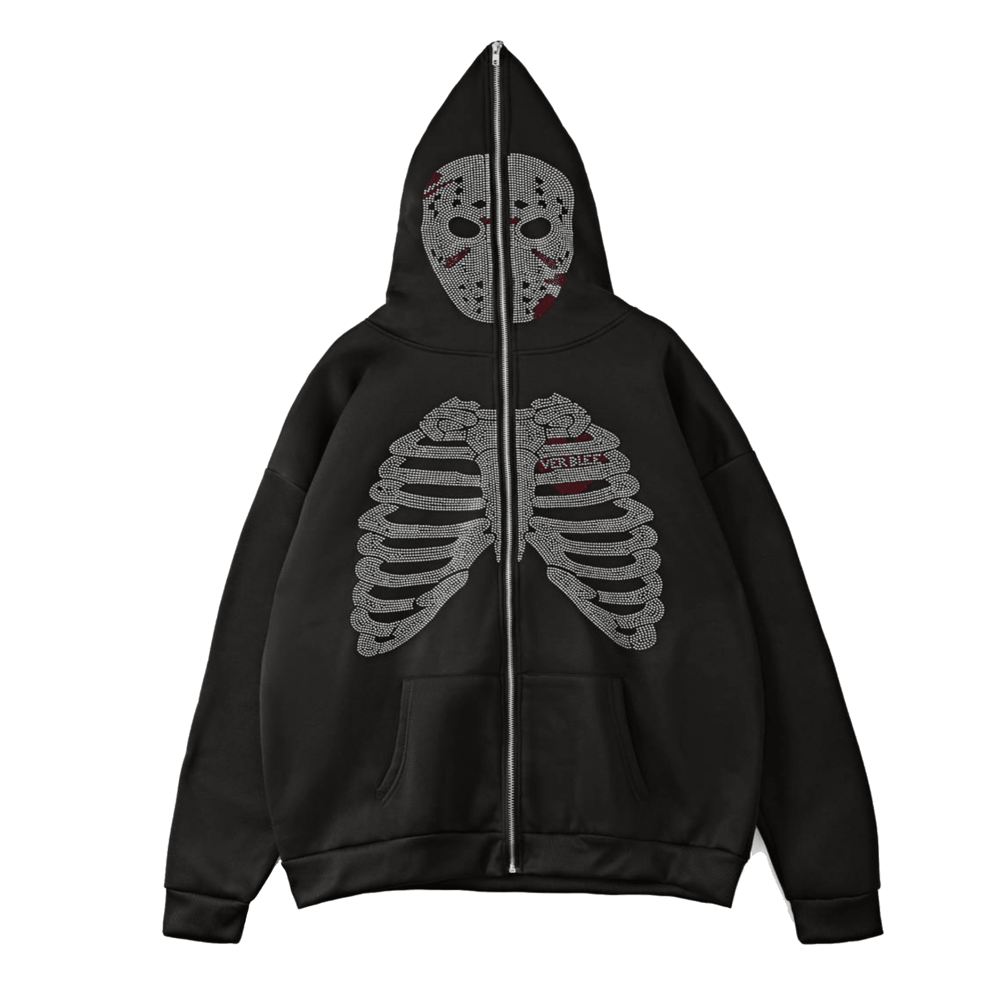 Le Sweat Squelette Strass Y2K de Mauv Studio est l’incontournable streetwear de cette saison. Avec son style rétro modernisé, ce sweat à capuche full zip ajoutera une touche d’originalité à vos tenues décontractées. Fabriqué dans un polyester de qualité, doux et respirant, il est orné de strass formant un motif squelette. Même avec la capuche fermée, la tête de mort reste visible, affirmant un look audacieux. Sa coupe sportive vous garantit confort et tendance. Préparez-vous à briller cette saison avec le Sweat Squelette Strass Y2K de Mauv Studio.