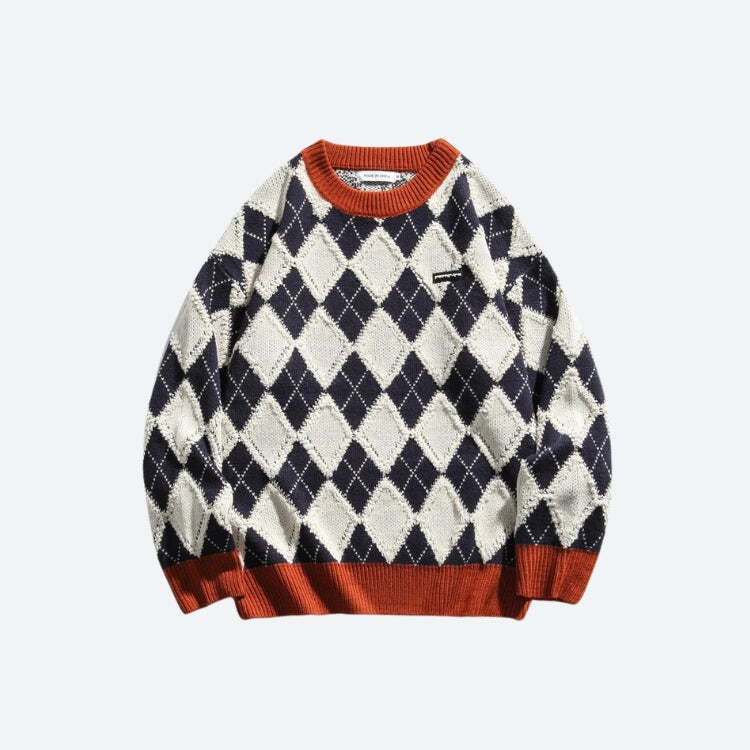 Be the first to review “Style Core Aesthetics, New Style Trends – Vintage Argyle Knitted Sweater” Cancel reply