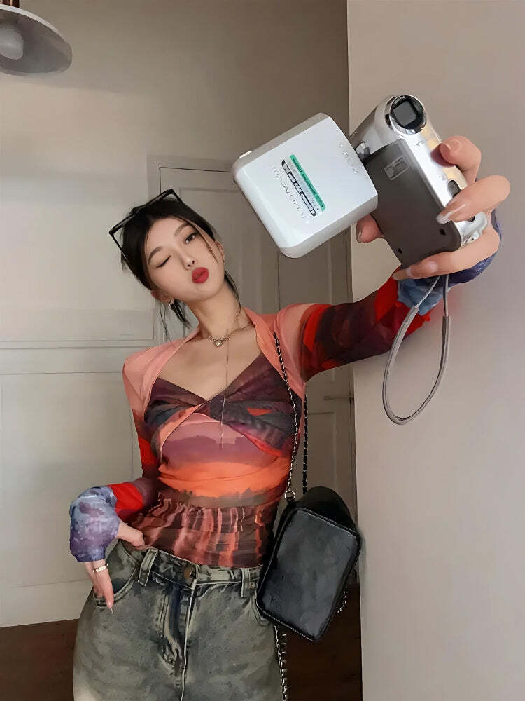 Be the first to review “Style Core Aesthetics, New Style Trends – Y2K Sunset Mesh Top” Cancel reply